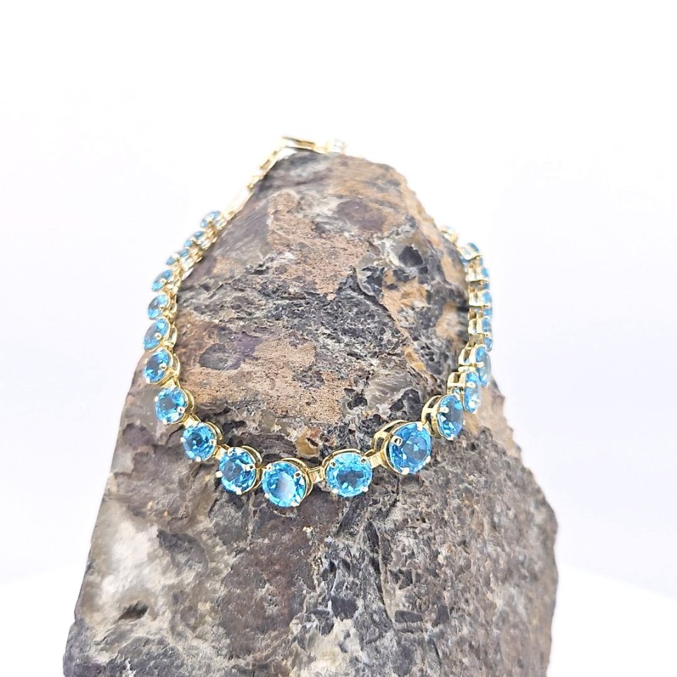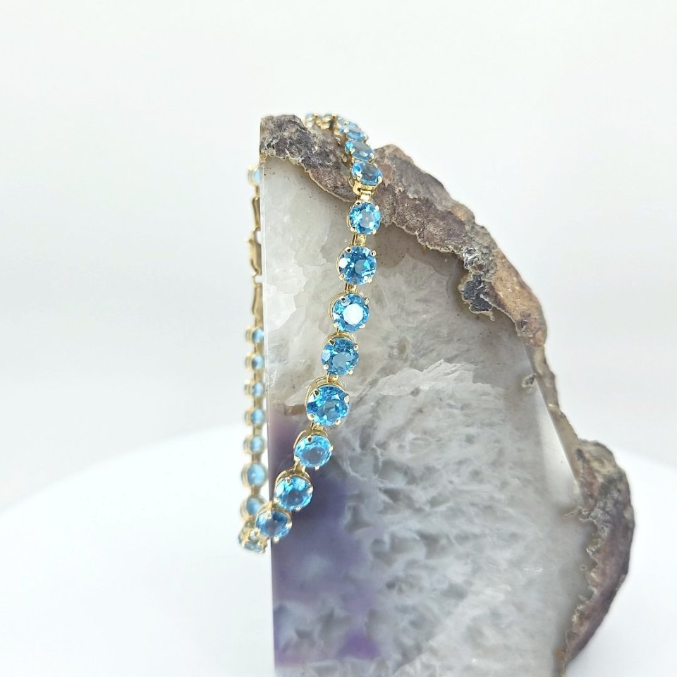 14k gold Riviere bracelet adorned with vibrant blue topaz stones
