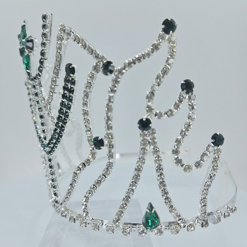 Feel like royalty with our Green and White Crown Tiara in Silver Tone. Perfect for weddings, quinceañeras, and costume parties. Channel your inner queen! Shop now.