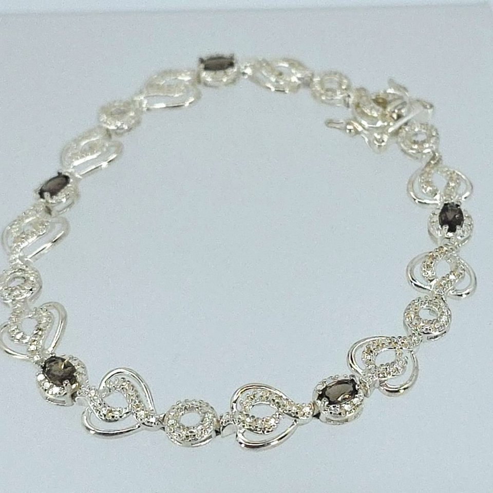 Adorn your wrist with this exquisite Ross Simons sterling silver bracelet featuring smoky quartz and sparkling diamonds. Measuring 7 3/4 inches, it blends elegance with charm for any occasion.