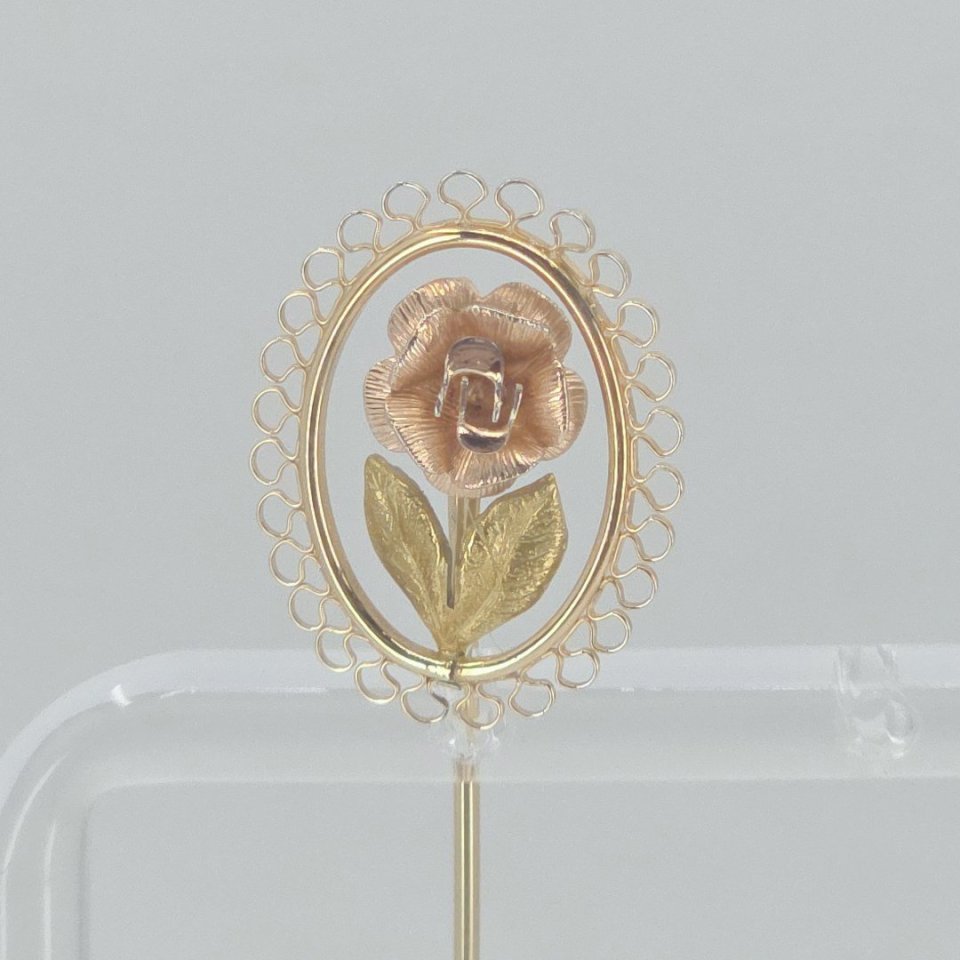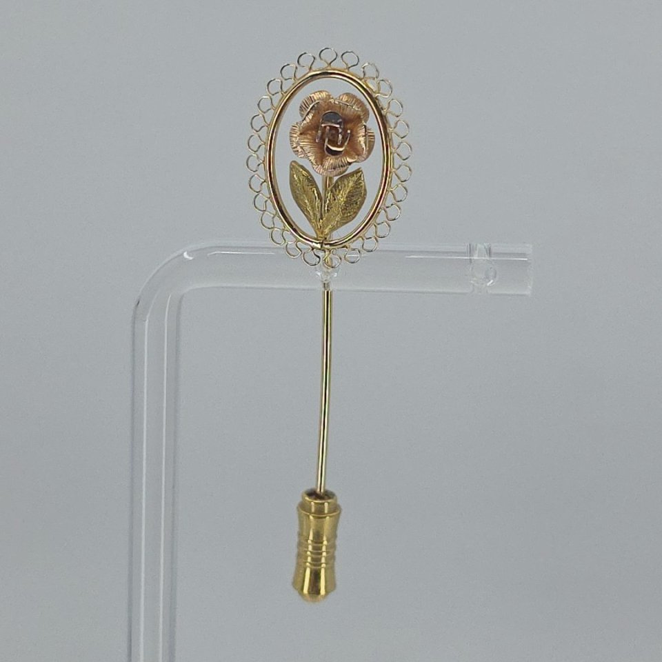 Elevate your style with the Krementz Two-Tone 14K Gold Overlay Rose Lapel Pin. Weighing 2g, this elegant brooch adds a touch of sophistication to any outfit. Perfect for any occasion.