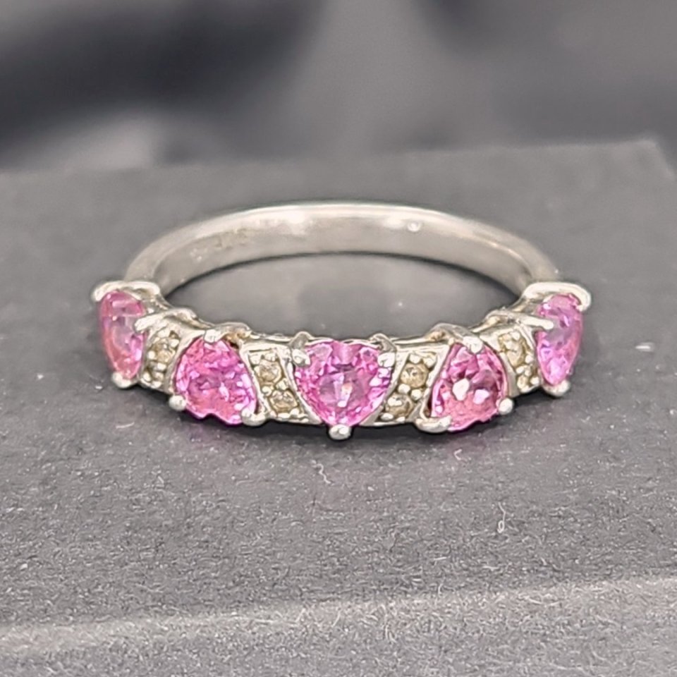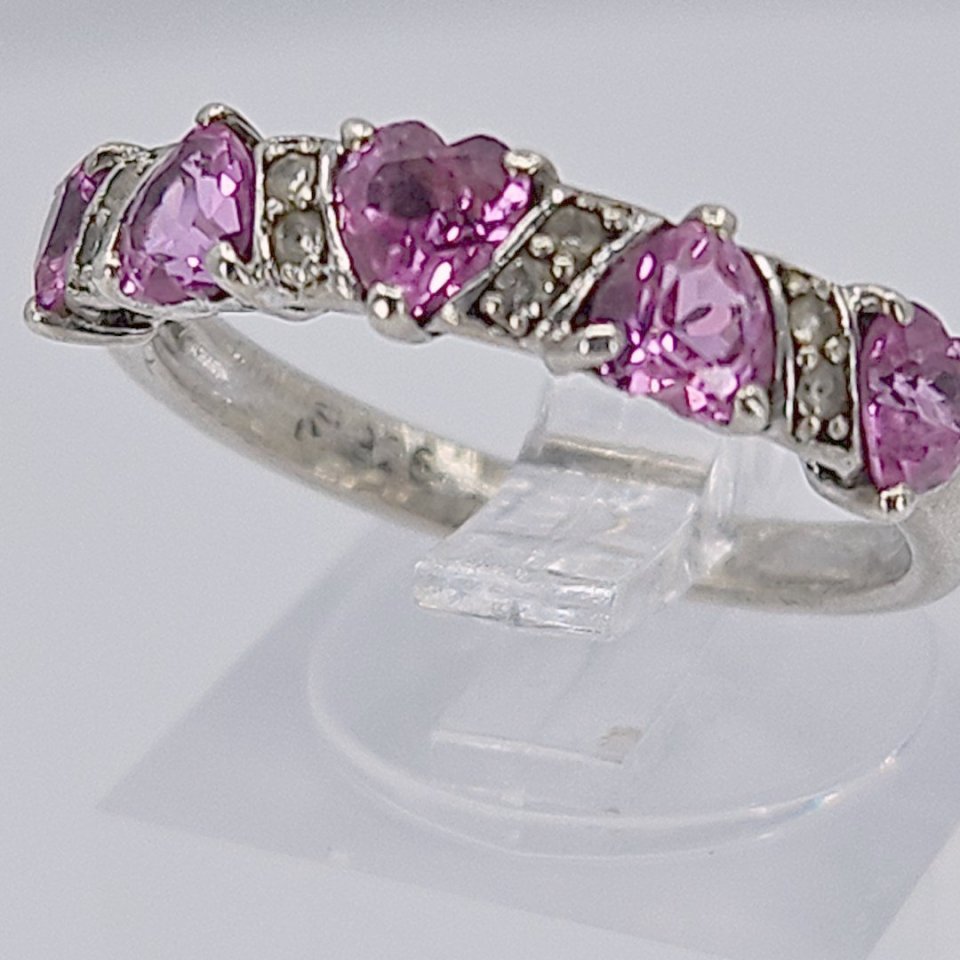 Pink Sapphire Hearts and Diamond 925 Silver Ring