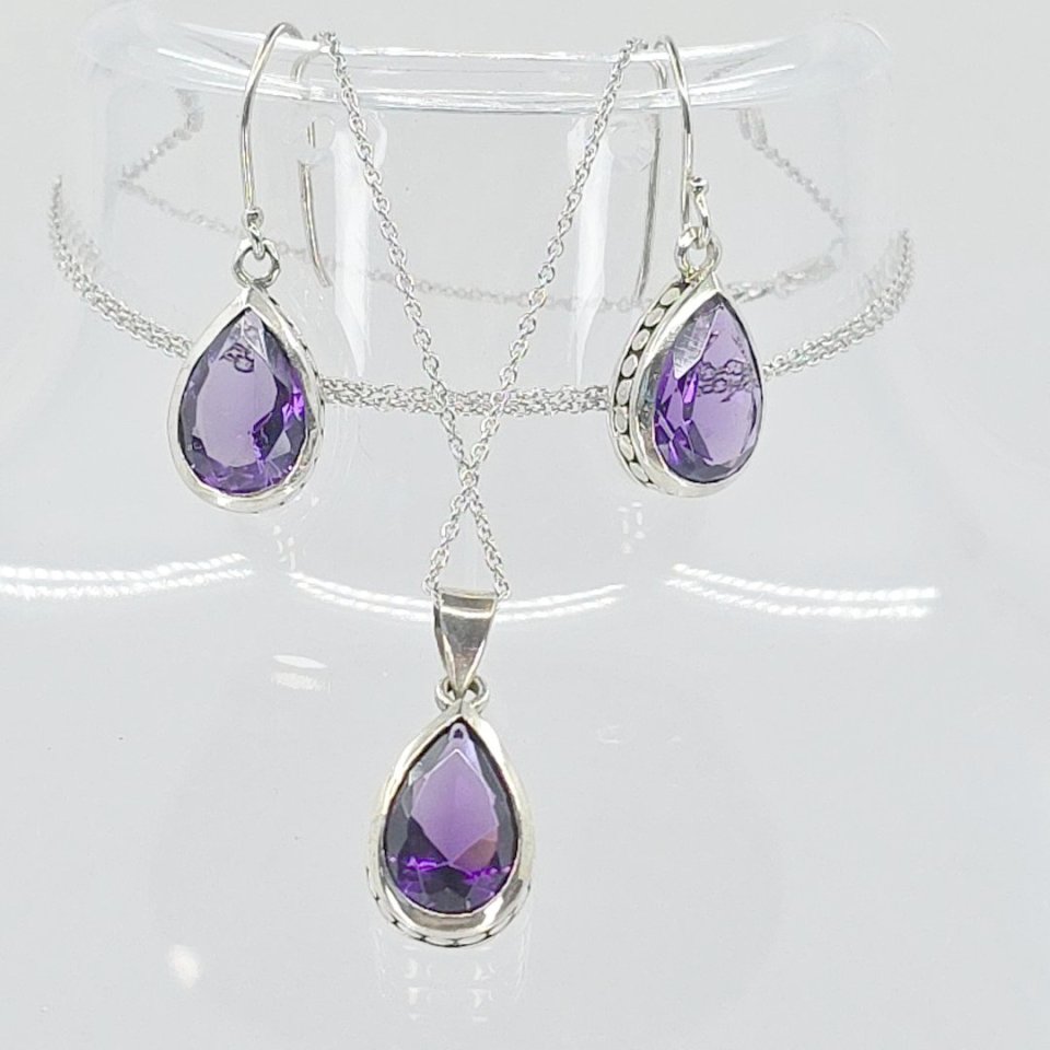 Elevate your elegance with the Coldwater Creek amethyst necklace, pendant, and earrings set. The 17.5 inch necklace features stunning amethyst stones, each measuring about 1.5 cm, adding a touch of luxury to any outfit. This beautifully coordinated set weighs just 8.5g, making it a perfect accessory for both casual and formal occasions.