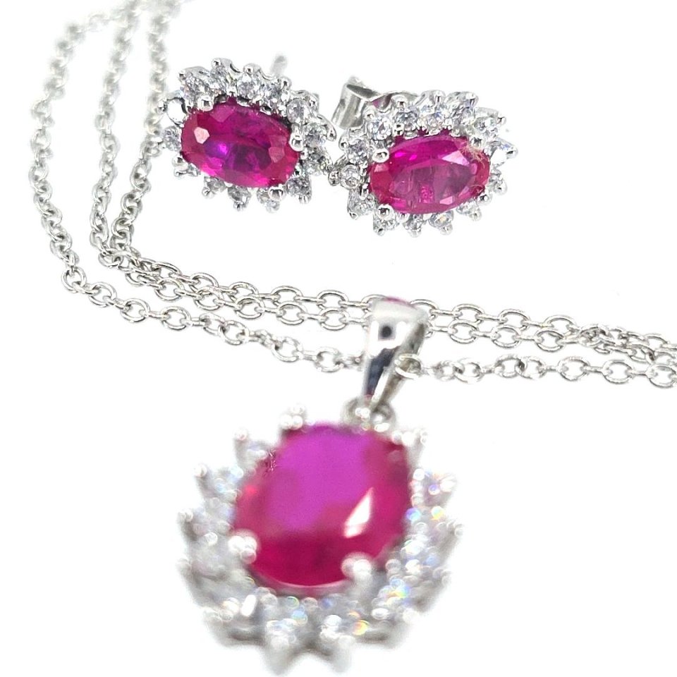Elevate your elegance with the Stauer Scienza Crimson Passion Necklace and earring set, featuring stunning ruby and CZ stones. Housed in an original Stauer jewelry box, this adjustable necklace measures 18 inches plus a 2-inch extender, offering versatile styling for any occasion. Adorn yourself in this luxurious ensemble for a timeless look.
