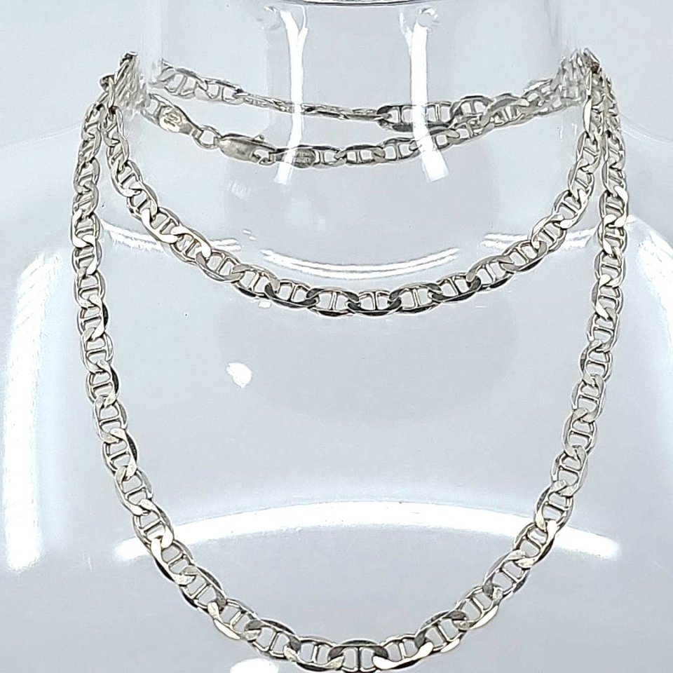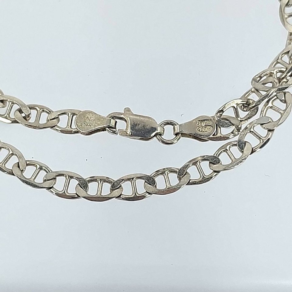 Adorn yourself with the elegance of this Milor sterling silver diamond cut mariner anchor chain link necklace. Measuring 20 inches with a 4.3 mm width, it combines style and sophistication. Crafted in Italy, the chain is stamped “925” for authenticity and weighs 11.2 grams, making it a staple for any occasion.