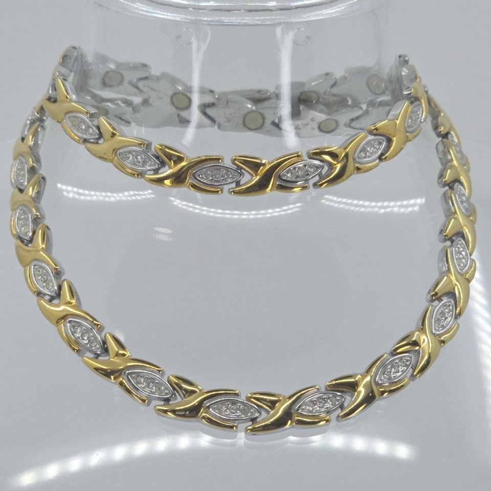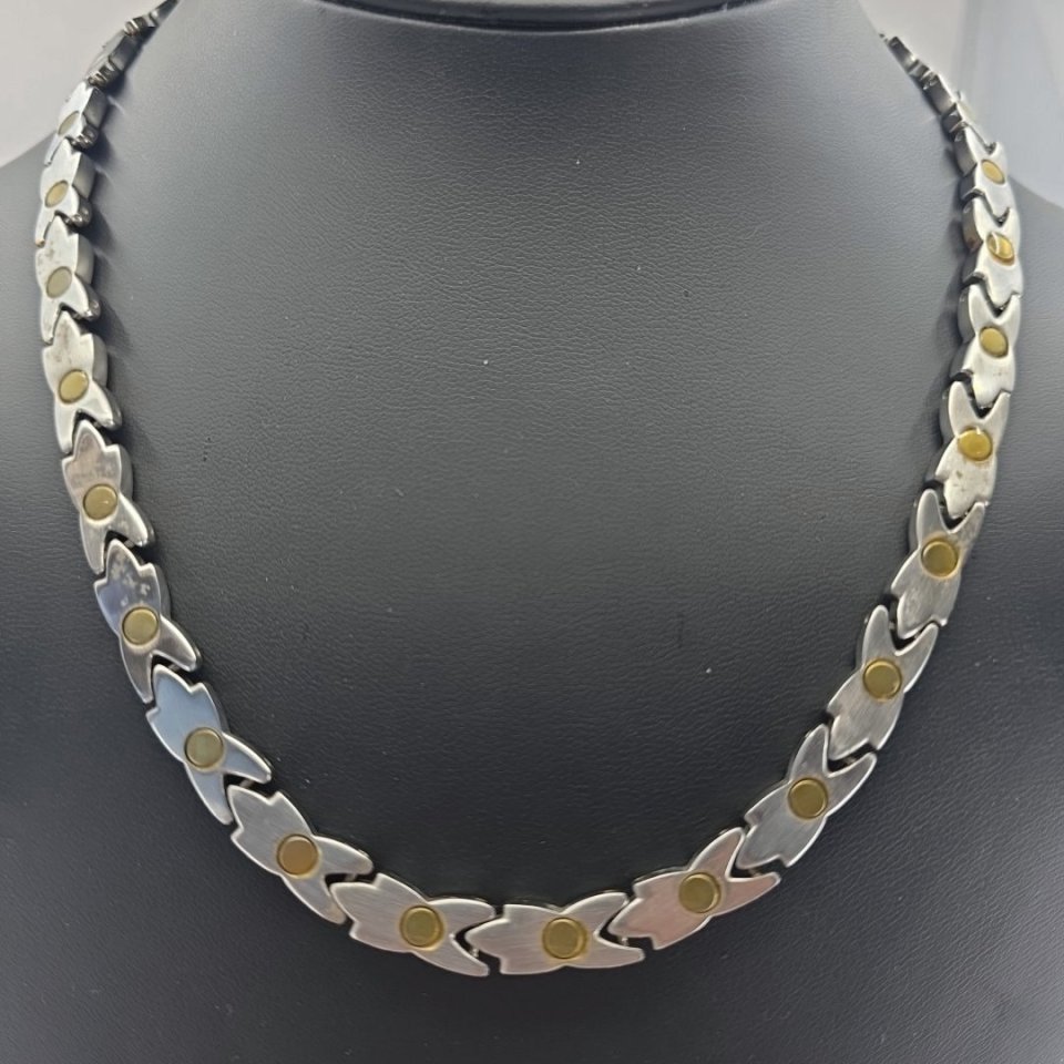 Elevate your accessory collection with this stunning stainless steel two-tone necklace, featuring elegant cubic zirconia accents. Measuring 19 inches, this heavy piece is not only durable but also exudes sophistication. It’s a perfect blend of style and lasting quality, ideal for any occasion or as a thoughtful gift.