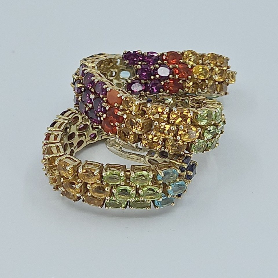 The bracelet features a beautiful combination of metallic hazel and blue beads, delicately woven together with a touch of Rafaelian Gold wire. The result is a captivating design that sparkles and shines with every movement, adding a touch of glamour to any outfit.