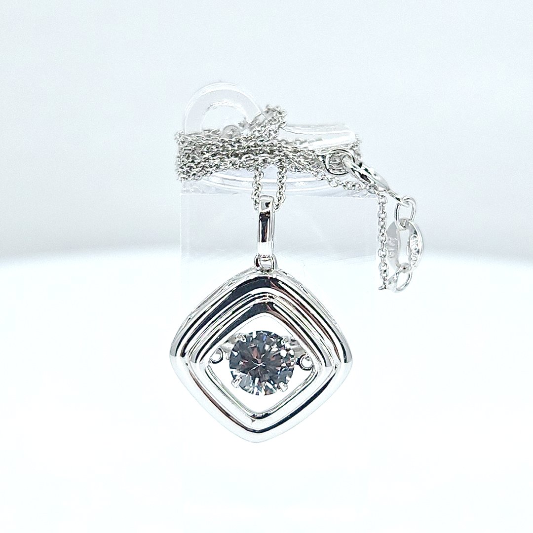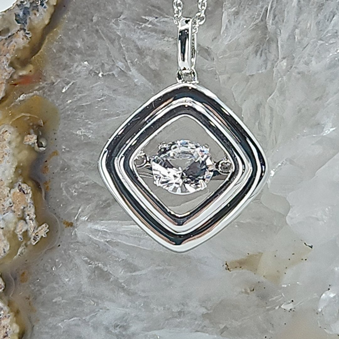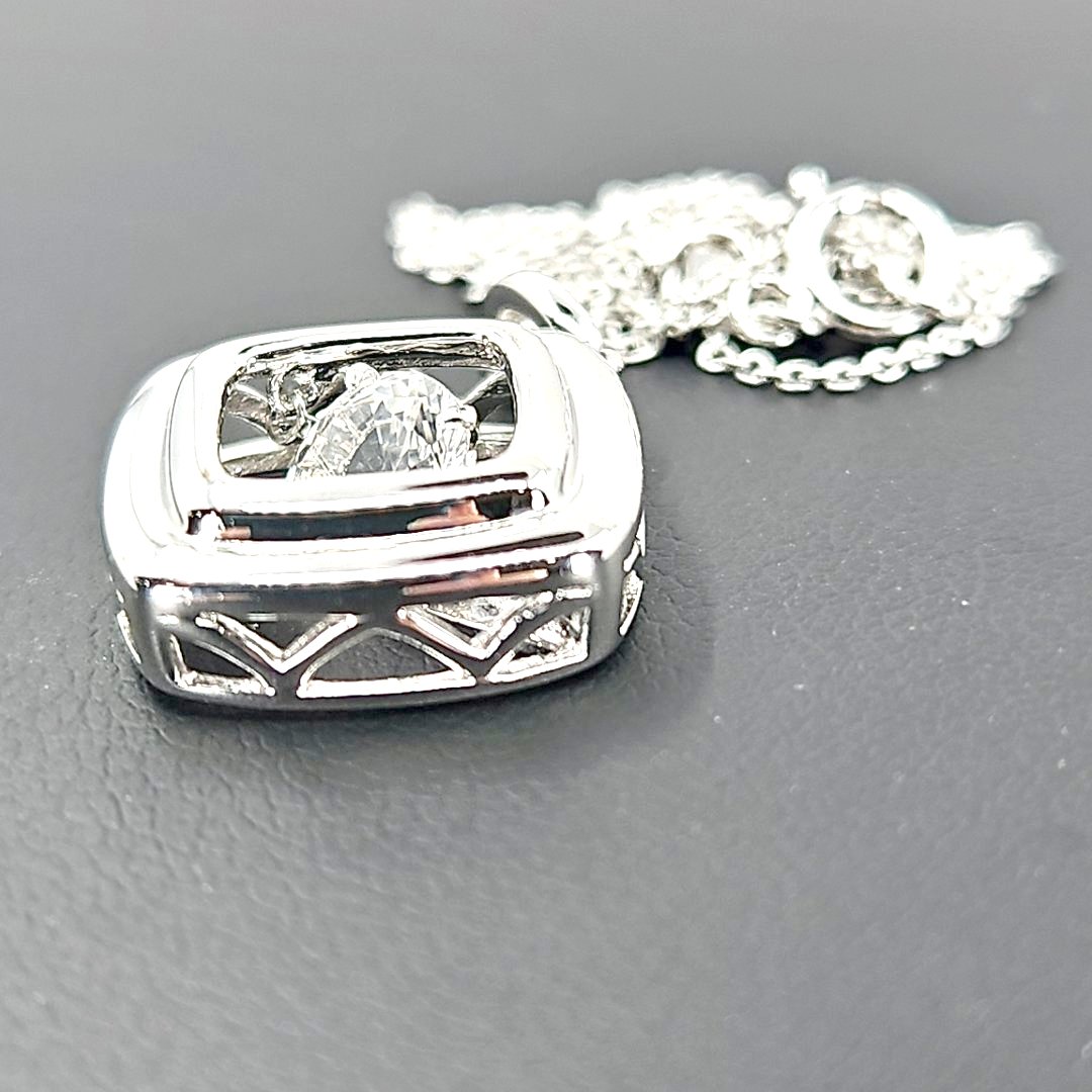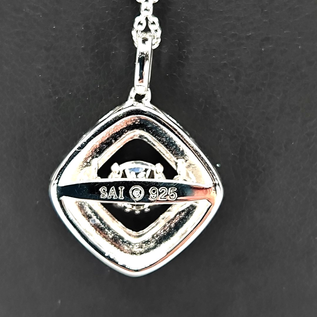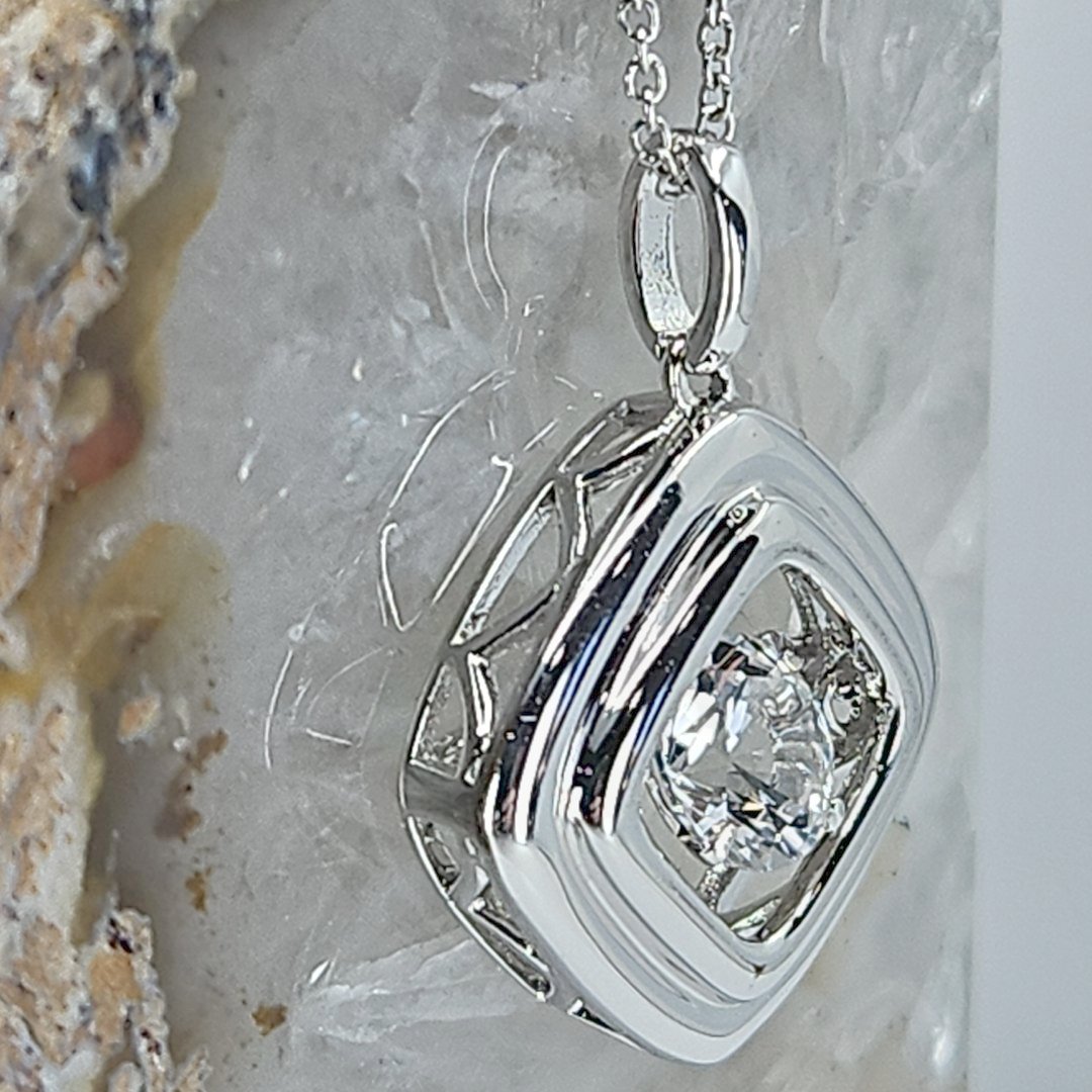 This stylish pendant features a high-quality 925 sterling silver square design encasing a sparkling white sapphire at its core. Perfect for adding a touch of elegance to any outfit, it represents craftsmanship and timeless beauty. An ideal choice for those who value sophisticated and chic jewelry pieces.
