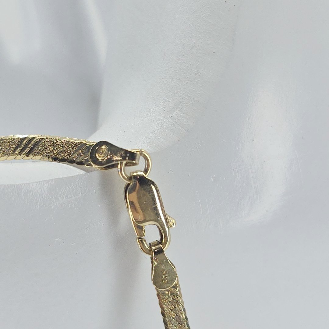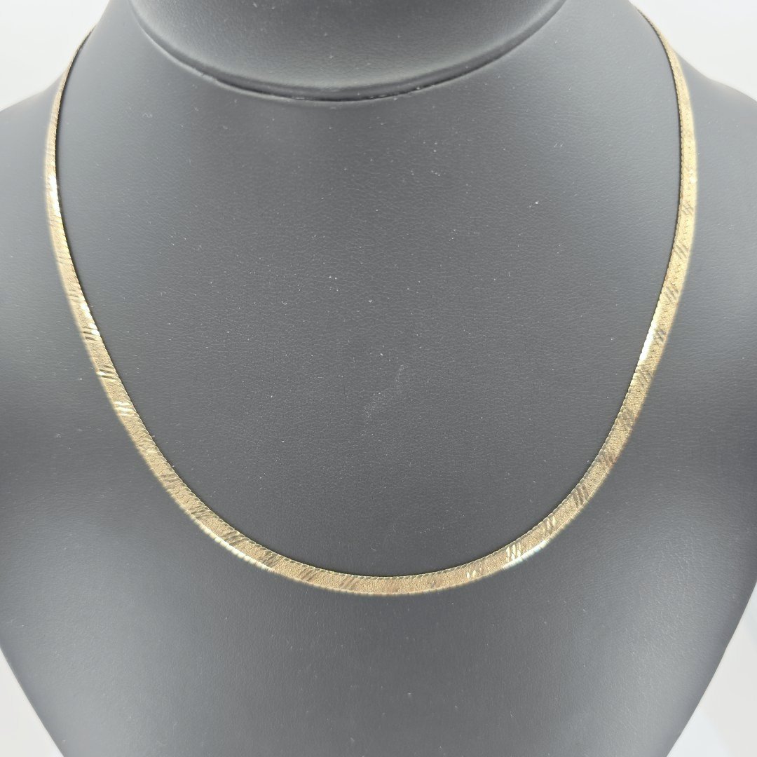 Elevate your jewelry collection with this exquisite Gold Over Silver Herringbone Necklace. Measuring 18 inches and weighing a substantial 7.5 grams, this stunning piece features a stylish herringbone design that elegantly catches the light, providing a radiant shine. The gold overlay over sterling silver offers durability and a luxurious appearance, ensuring this necklace will be a cherished accessory for years to come. Perfect for layering or wearing on its own, it effortlessly complements any outfit—from casual to formal.
