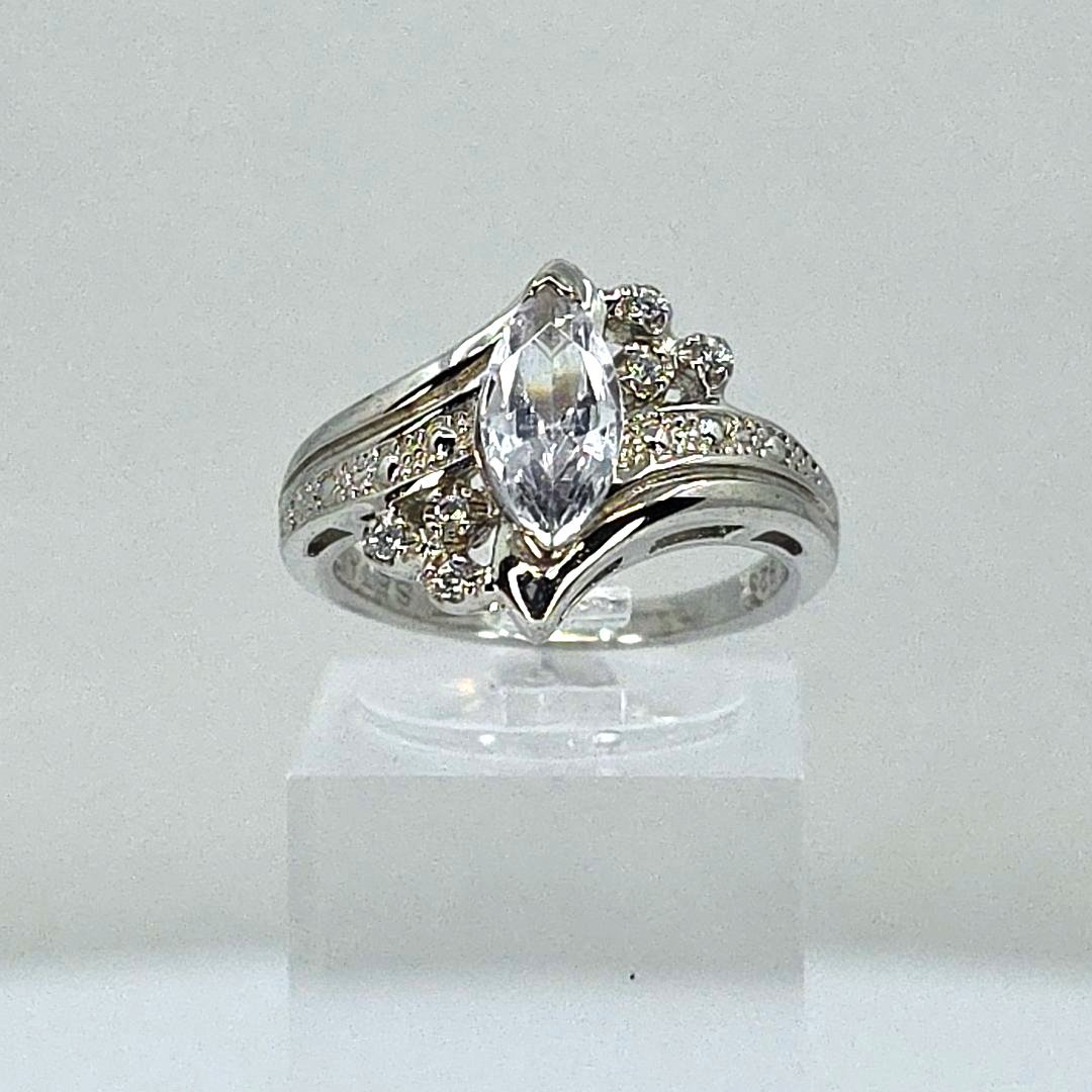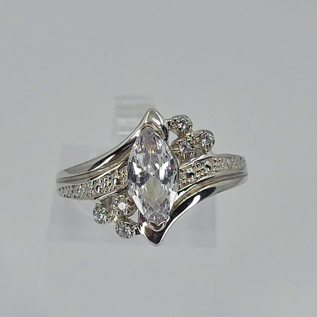Elevate your elegance with this stunning Sterling Silver Marquise and Round CZ Ring, expertly crafted to enhance your jewelry collection. Weighing 3.6 grams, this exquisite piece showcases a captivating design featuring both marquise and round cubic zirconia stones, thoughtfully arranged for maximum brilliance. With a size of 6, it is perfect for various occasions, from casual outings to formal events.