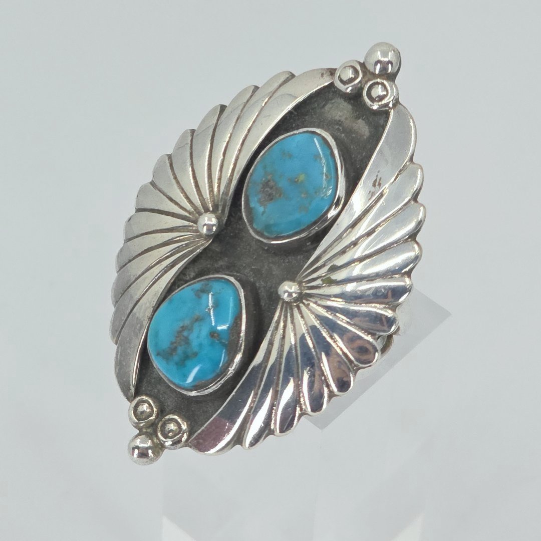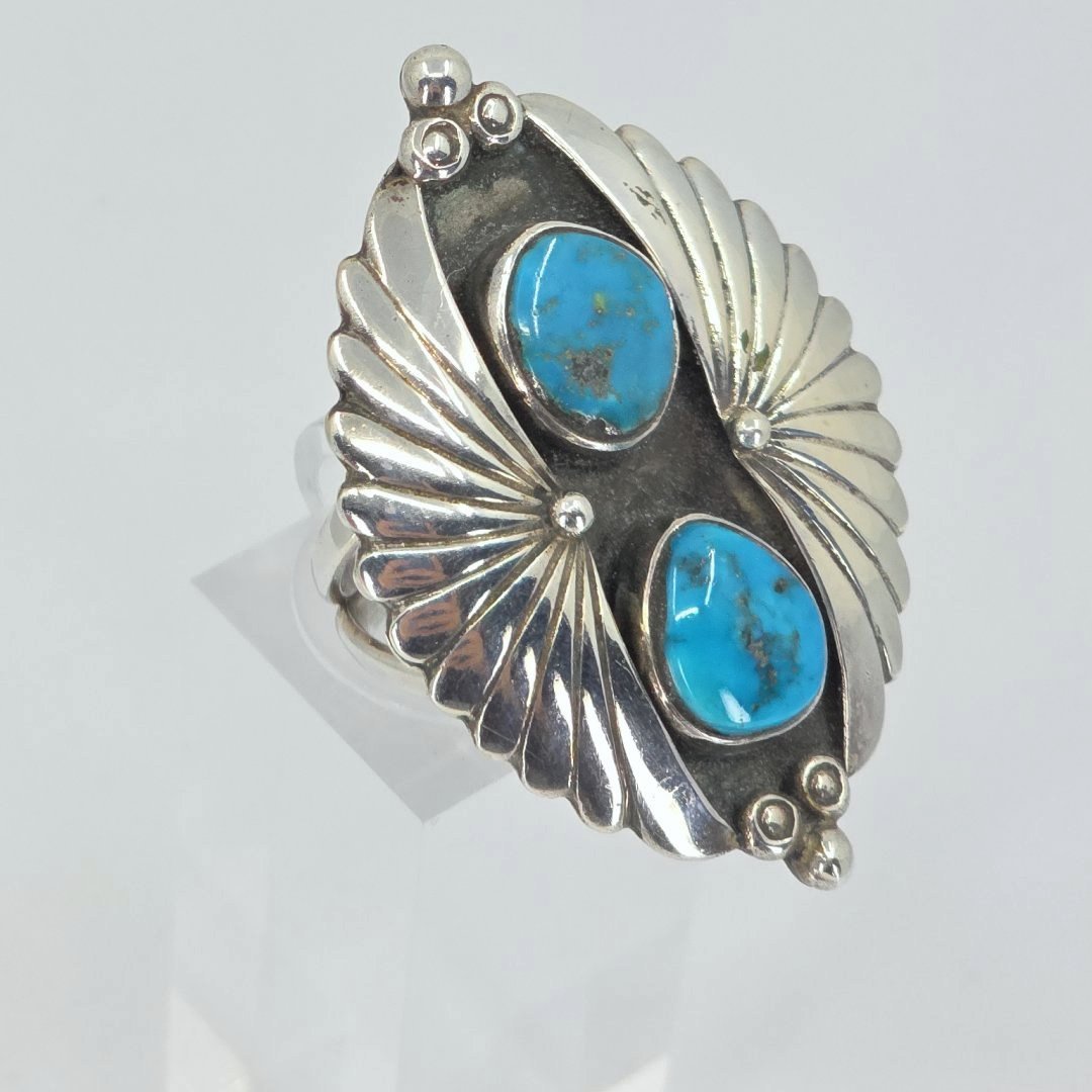 Discover the elegance of our genuine Turquoise Statement Silver Ring, a stunning piece designed to make a bold impression. Crafted from high-quality sterling silver and weighing an impressive 10.7 grams and 1 3/4 inches, this size 7 ring features a vibrant turquoise stone, showcasing intricate natural veining that enhances its unique beauty. The rich hue of the turquoise contrasts beautifully with the polished silver, creating a striking accessory suitable for any occasion.