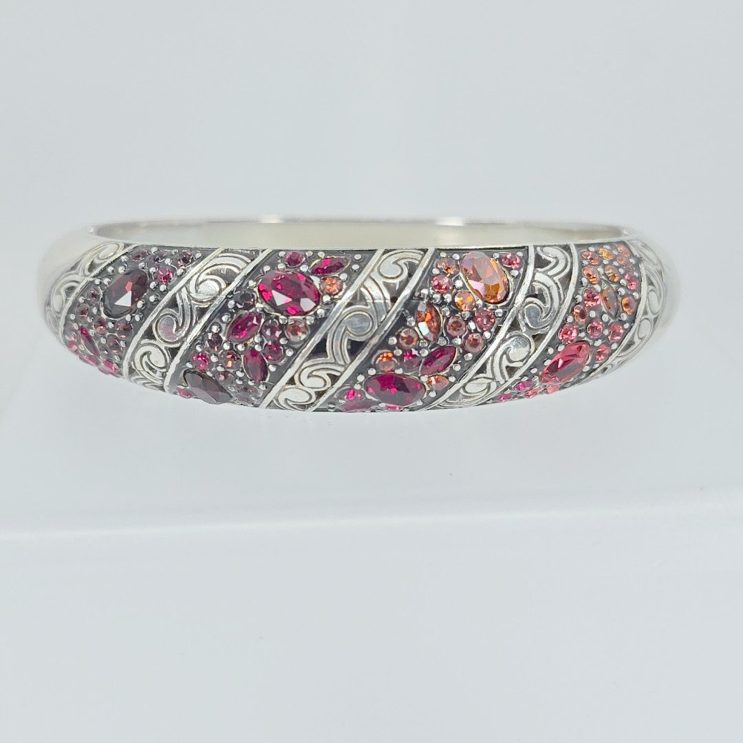 This hinged bangle ensures a secure yet easy fit, making it an ideal accessory for everyday wear or special occasions. Its versatile design seamlessly transitions from casual to formal, enhancing your overall look with sophistication and charm. Embrace the beauty and craftsmanship of this timeless bracelet, a must-have for any jewelry collection.