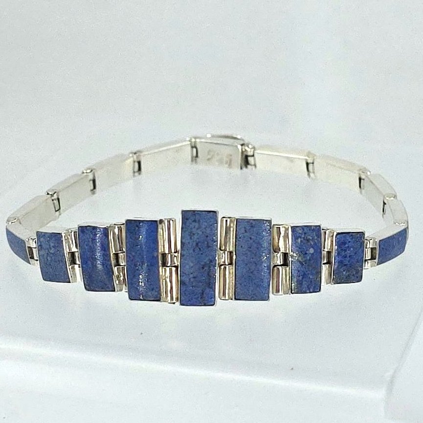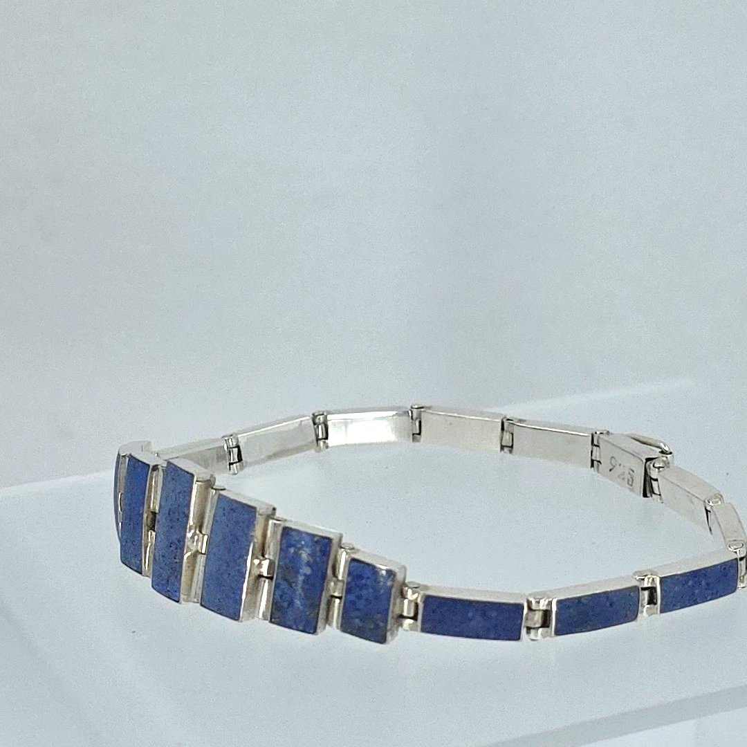 This bracelet is perfect for both casual and formal occasions, making it a versatile addition to any jewelry collection. Whether you’re treating yourself or searching for a unique gift, this bracelet stands out as a testament to fine craftsmanship and timeless design. Elevate your style with the Lapis Lazuli Inlay Panel Link Silver Bracelet today.