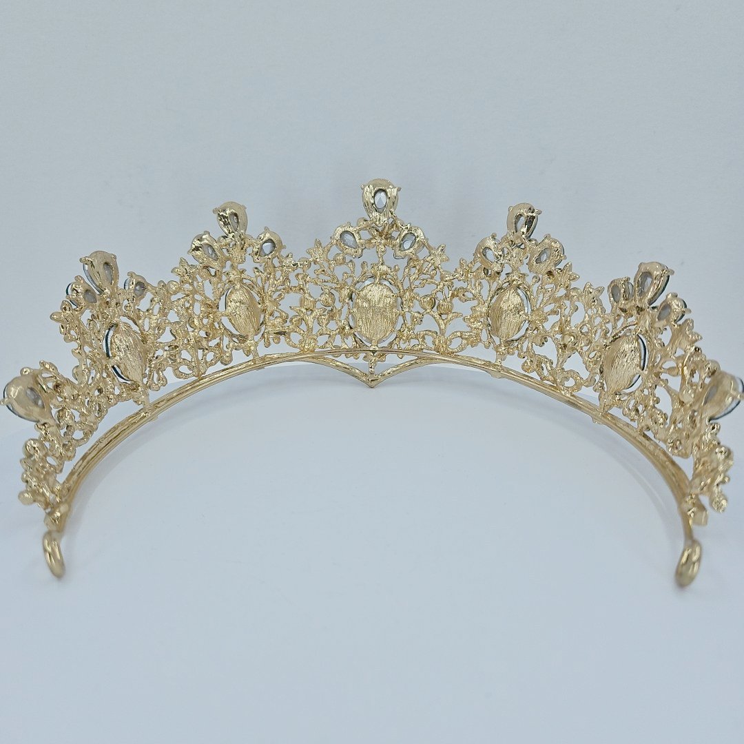 Whether you’re drawn to the classic appeal of a tiara or looking for the perfect finishing touch for your wedding ensemble, this piece promises to add a touch of enchantment to any occasion. The subtle blend of golden, green, and white tones creates a truly mesmerizing effect.