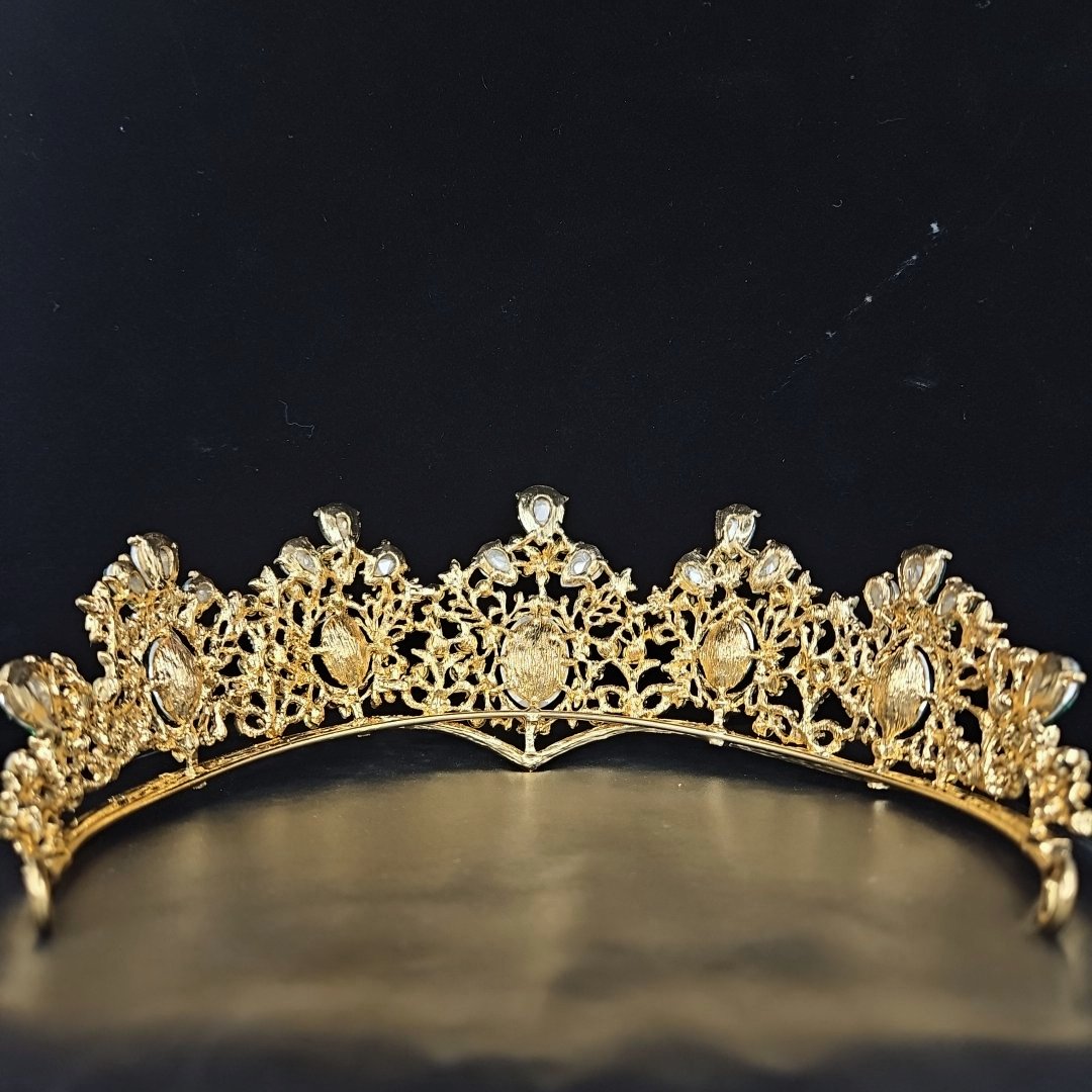 Make a statement on your special day with the Golden Green and White Crown Tiara, designed to add a touch of royalty to your look. Crafted with quality materials, it offers a comfortable fit and exudes a sense of opulence and grace.