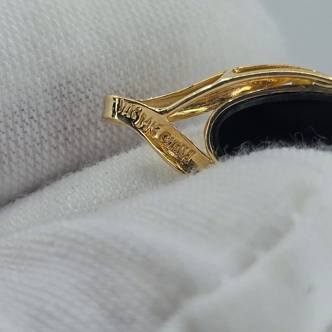 Discover the elegance of this stunning 14 karat yellow gold reversible pendant, featuring a mesmerizing mosaic of fire opal and obsidian. Measuring approximately 2cm, this exquisite vintage piece by Whitney Kelly showcases inlaid artistry that captures the light beautifully, creating a vibrant display of colors. The pendant is thoughtfully stamped “WK 14K China,” affirming its quality and craftsmanship.