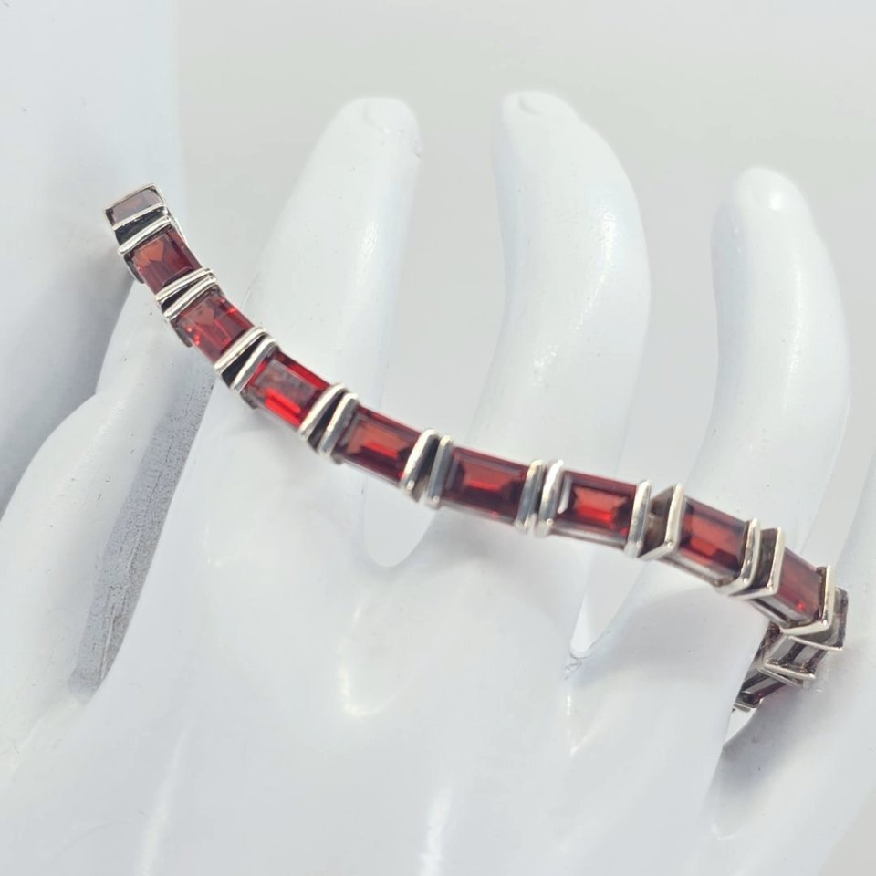 Embrace elegance with this stunning sterling silver garnet flower cluster pendant, designed for those who appreciate the beauty of nature. The pendant measures 1.5 inches in length, featuring a beautifully crafted flower design that spans 1 inch. Suspended from a sophisticated three-strand necklace, this exquisite piece falls gracefully at an adjustable length of 18 inches, making it a versatile addition to your jewelry collection. Weighing 14 grams, it is quality stamped “925 China” along with the maker’s mark, ensuring its authenticity.