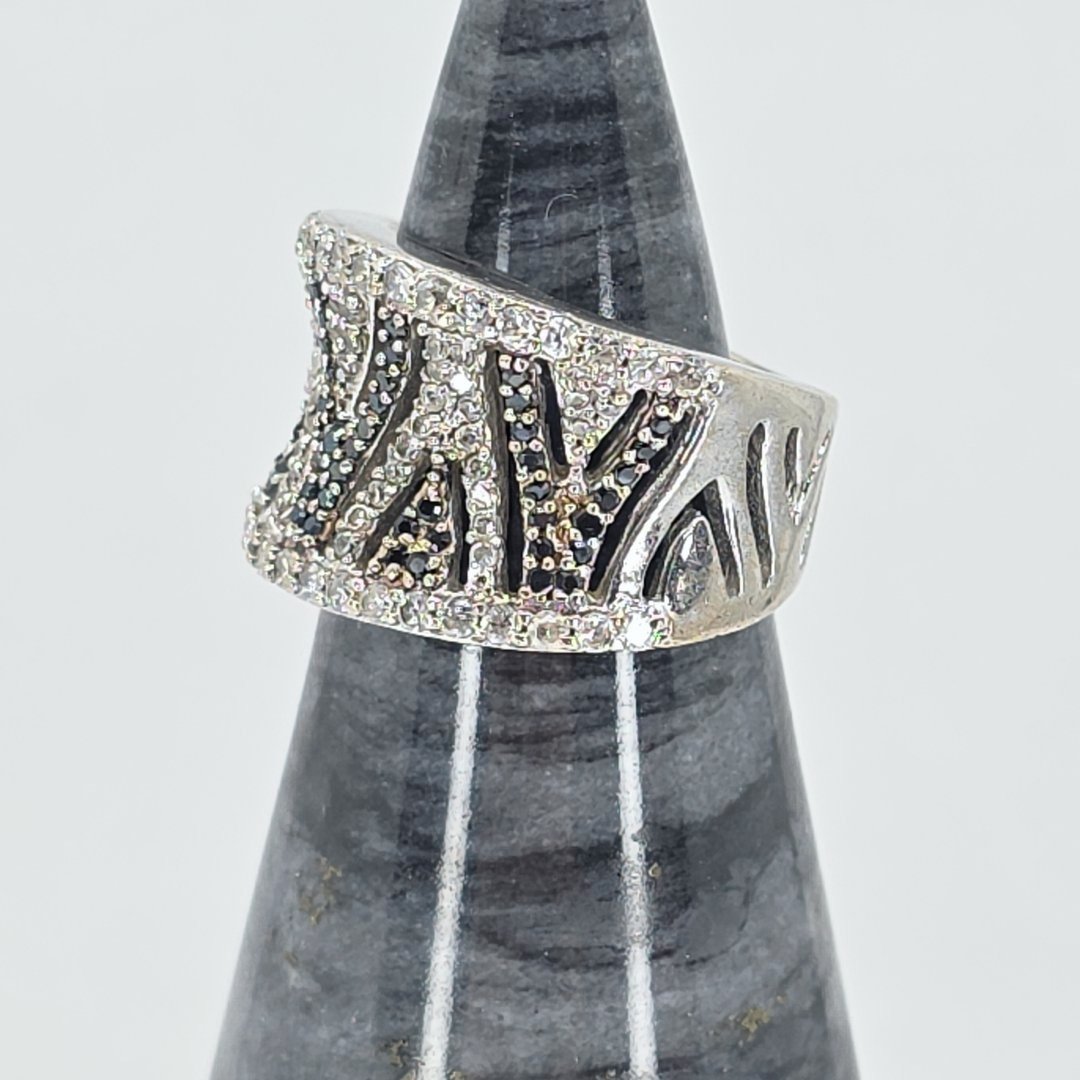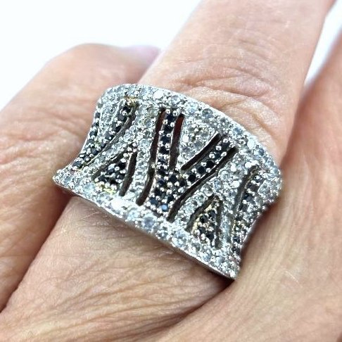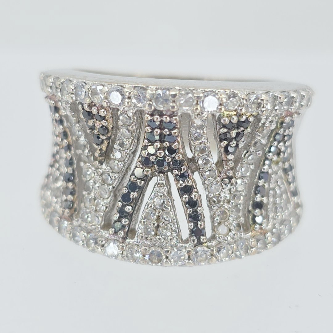 Elegance meets contemporary design in this striking black and white cubic zirconia wide band ring, crafted from high-quality sterling silver. Weighing 8.5 grams, this size 6 ring showcases a stunning interplay of dark and light stones that create a bold statement. The ring is stamped with “ED 925,” ensuring authenticity and a commitment to quality. This versatile piece can elevate any outfit, from casual to formal, making it an ideal addition to your jewelry collection.