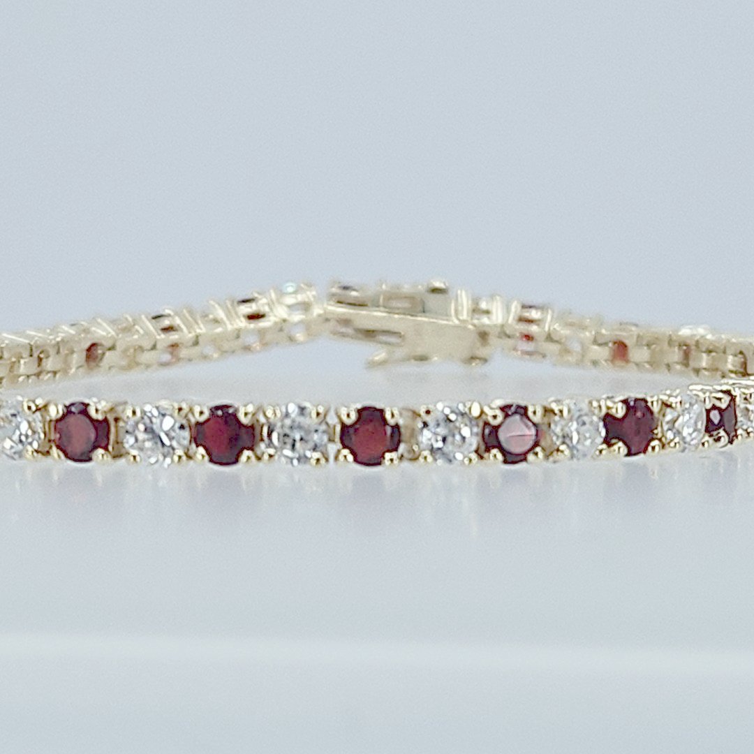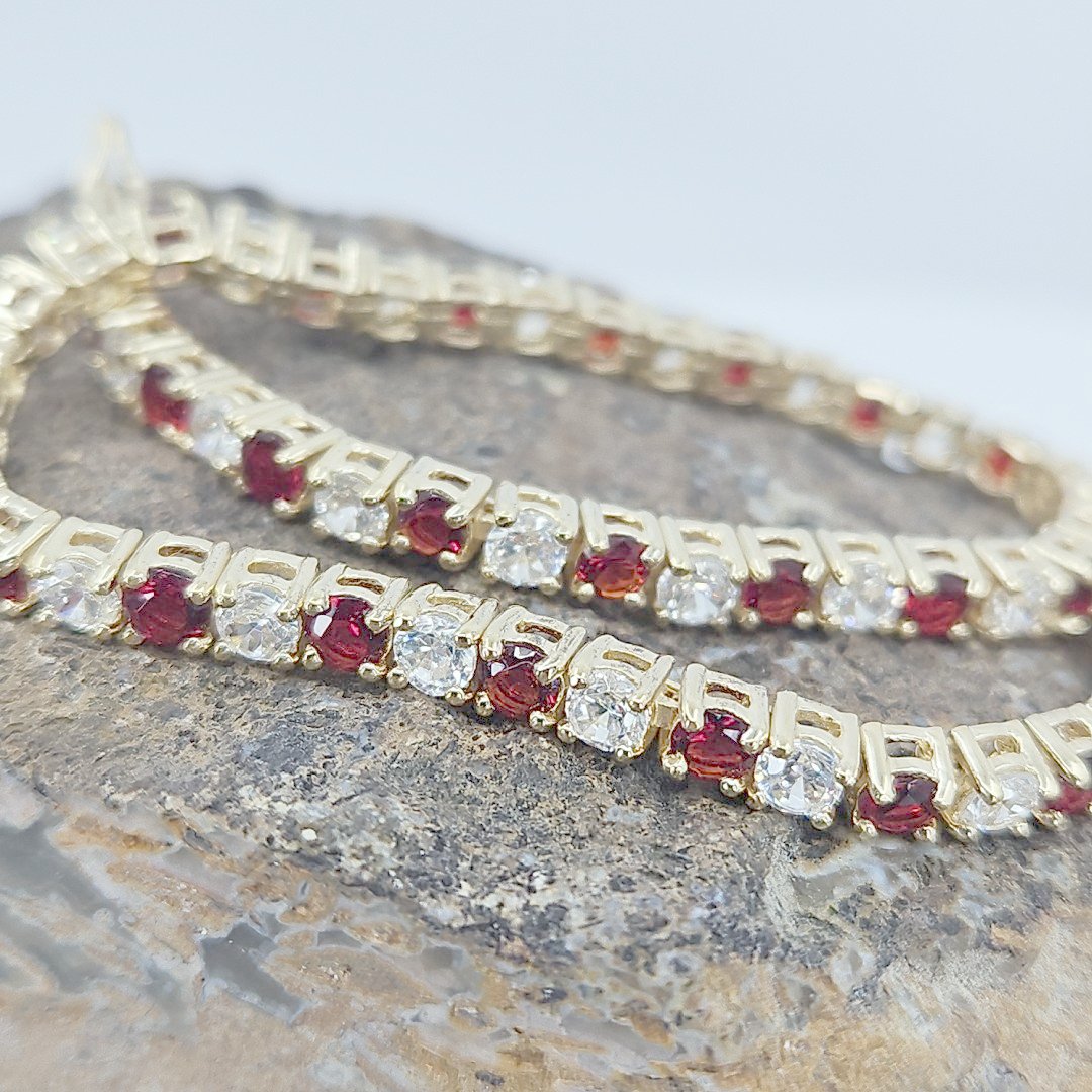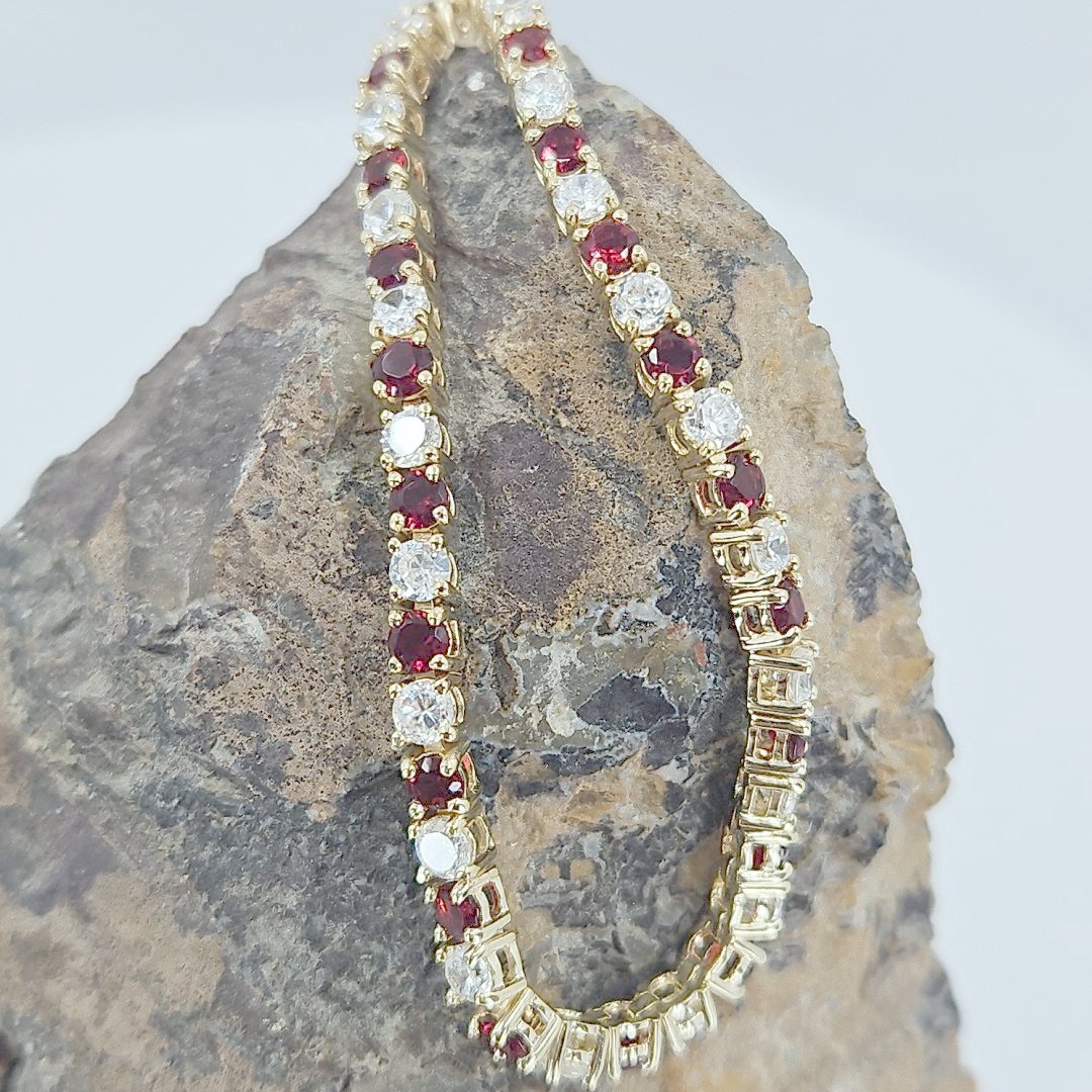 Beautiful red and white CZ Ross Simons tennis style bracelet. Gold Over Silver. Length is 7 inches. Stamped with the R for Ross Simons and 925 China.