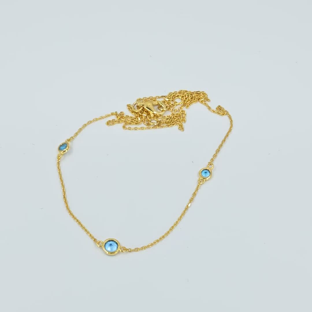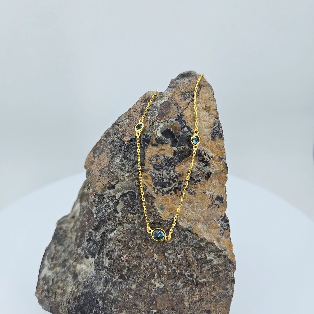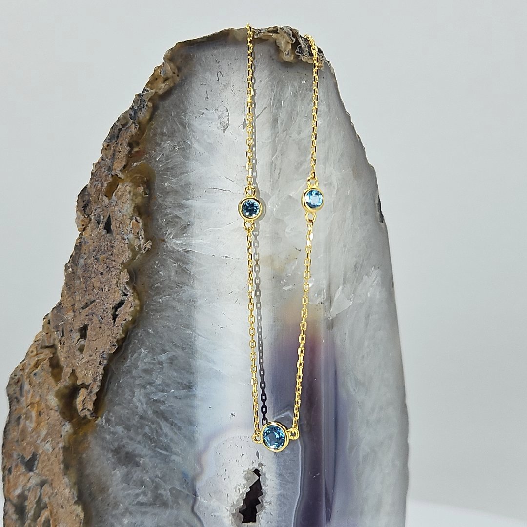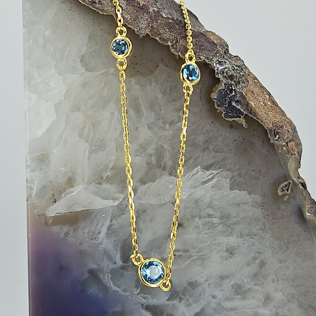 Join us in adding a touch of elegance to your wardrobe while making a difference with every purchase. Shop now and experience the beauty, craftsmanship, and individuality of our Vermeil Gold over Silver Blue Topaz Station Necklace from Tazzy’s Treasures.