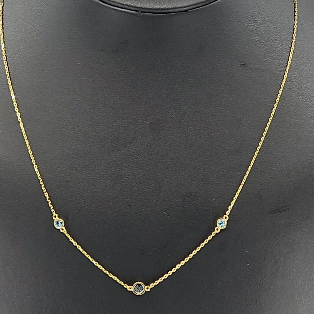 Introducing our 18 inch Vermeil Gold over Silver Blue Topaz Station Necklace! This stunning piece is the perfect blend of elegance and uniqueness, making it a must-have for anyone who appreciates timeless treasures with character. The necklace features captivating blue topaz stones set in vermeil gold over silver, creating a sophisticated and eye-catching look that is sure to turn heads.